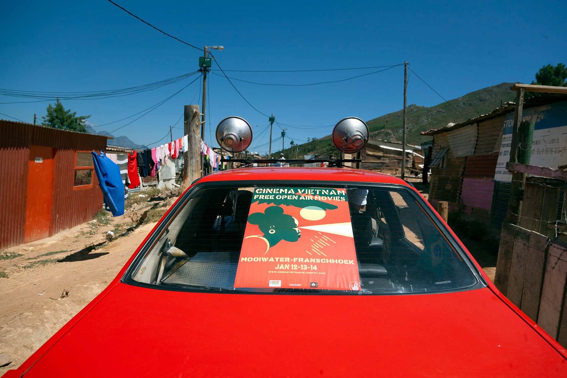 The Cinema Vietnam-project came to be after a call from the Cape Winelands District Municipality for a touristic event with an emphasis on local community empowerment. A series of open air film screenings took place in the heart of the Mooiwater township in Franschhoek, South-Africa in January 2012. The former informal settlement “Vietnam”, where a majority of the inhabitants of Mooiwater used to live, inspired the name of the event.